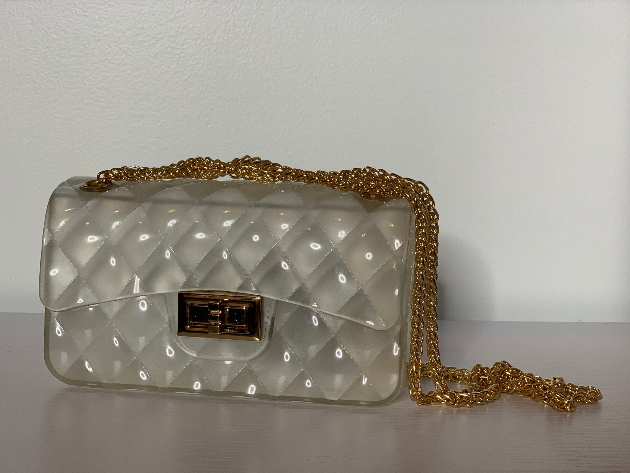 Clear jelly quilted cross body mini purse