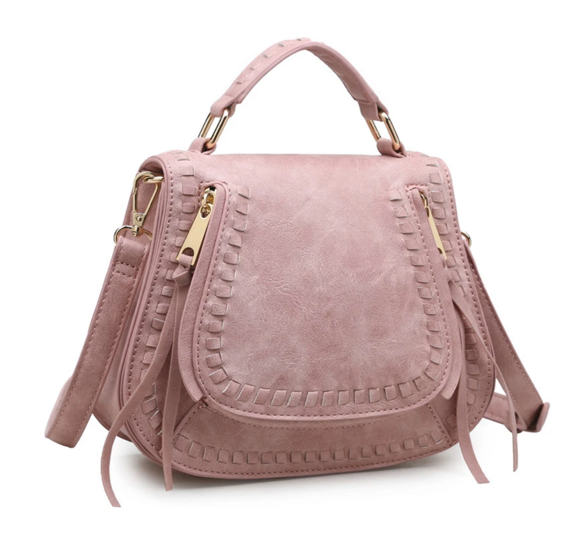 Khloe Mini Dusty Rose Vegan Leather Messanger Saddle Bag